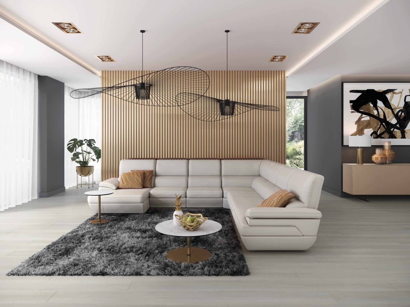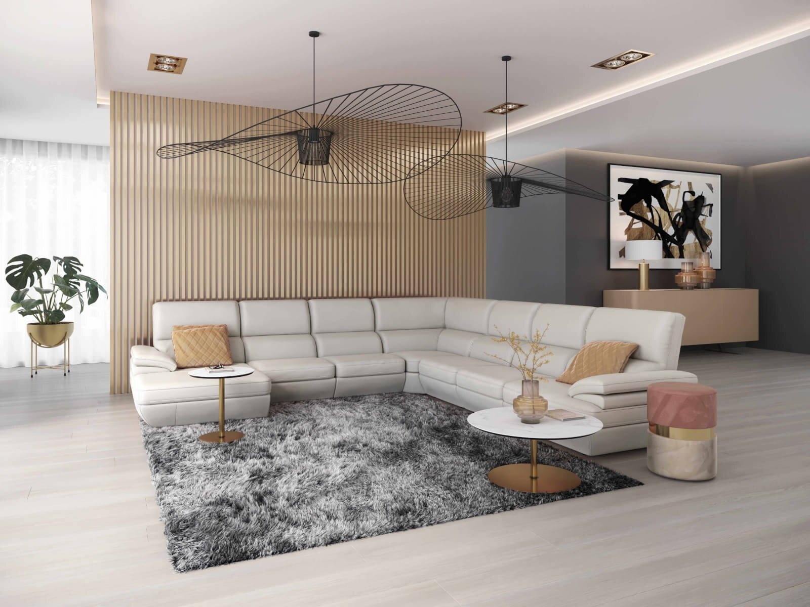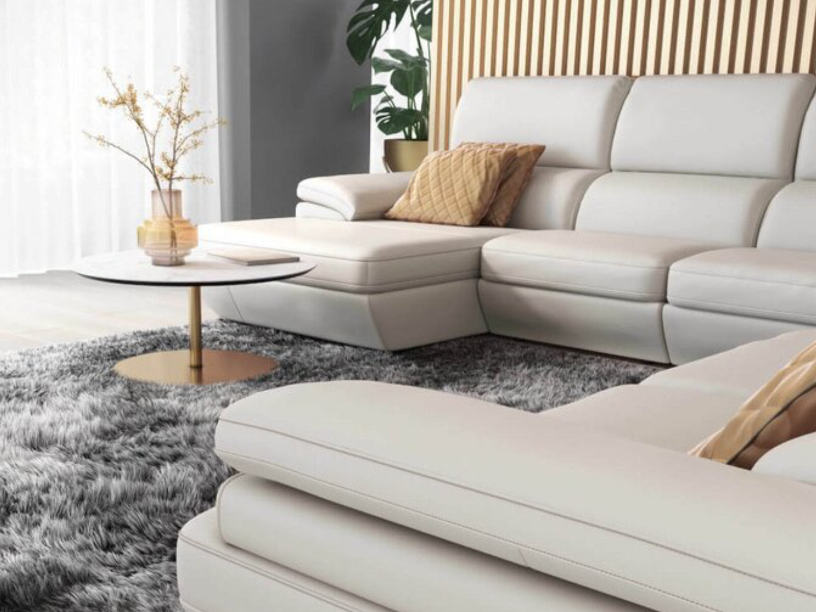 Elva U-shape Left Chaise Beige Leather Sectional