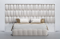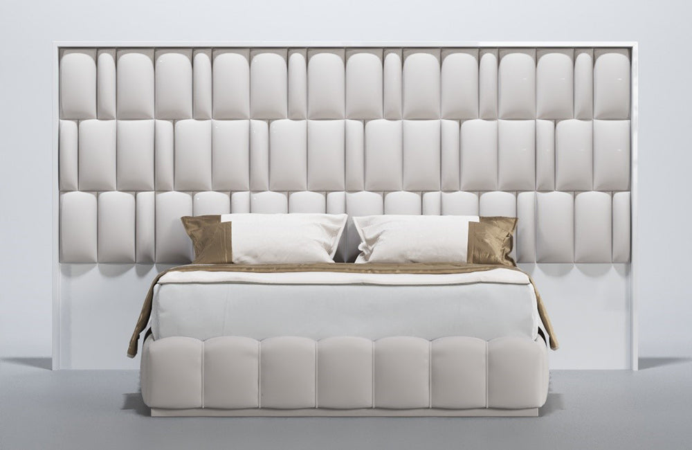 Orion is a new European collection of bedroom furniture. This bedroom set is made in modern futuristic style in white color. The incredibly beautiful pattern adorns not only the headboard of the eco-leather but also the surface of the remaining elements in a white glossy finish. The Orion bed is available in King Size and Queen sizes, you can also choose the storage option. The bed in any configuration always features LED light in its headboard.