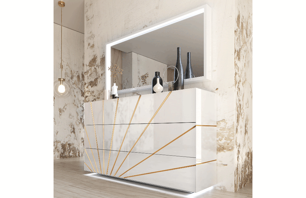 Take your bedroom space to a whole new modern level with this Oro white bedroom from Franco. This stunning bed has a led light on the headboard and the cases, also comes with a gold line going across the headboard and cases to finish off the presentation on a glamorous and upscale note.