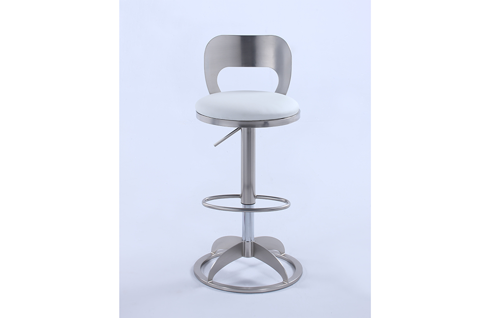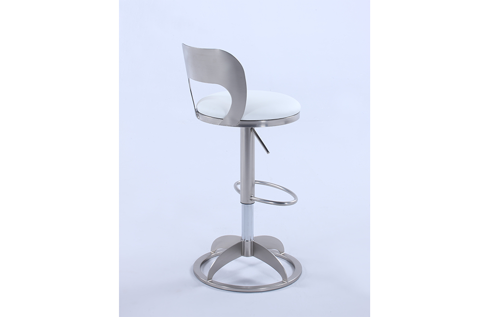 With a lovely oval metal back design, gas lift adjustable operation, and a sumptuous white faux leather seat, this stool is replete with features that make it a great choice for any dining room arrangement.