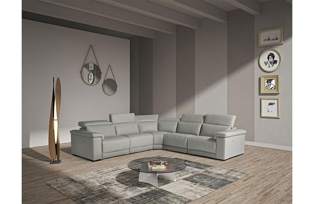 Palinuro Modern Gray Leather Sectional Sofa