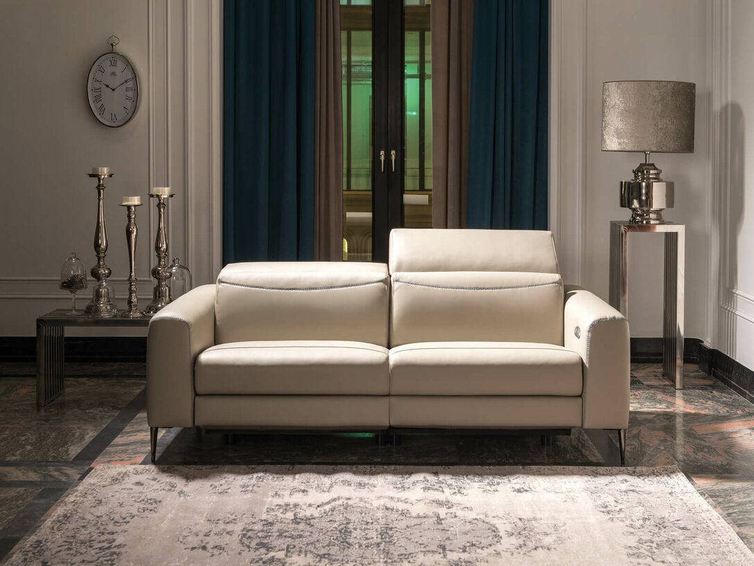 Experience ultimate comfort, style, and practicality with the Nordholtz Pauline two-seater sofa. Crafted with beige leather upholstery and graphite chrome metal legs, this sofa is the perfect addition to your living room for relaxation and well-being. The adjustable headrests, footrest, and electric motor powered by electricity ensure a custom and comfortable seating experience. Boasting high-quality foams, non-woven fabrics, springs, and elastic belts, this sofa offers exceptional support. It can also be customized with different upholstery materials, colors, and power methods to suit your preferences. Pair it with other furniture from the Nordholtz Pauline collection to complete your home decor.