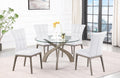 - Detail Description: Dining Set w/ Glass Top Table & Tufted Solid Wood Chairs