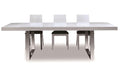Modern and sleek, this extendable dining table will decorate any interior, providing enough space for large family dinner. The tabletop is made in White Crocodile Pattern, making the table really unique and beautiful. Stainless steel legs emphasize the modern look of the table and add extra charm to the design.