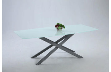 Starphire Glass s dining table top with elegant black "X" shaped legs .