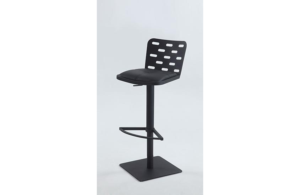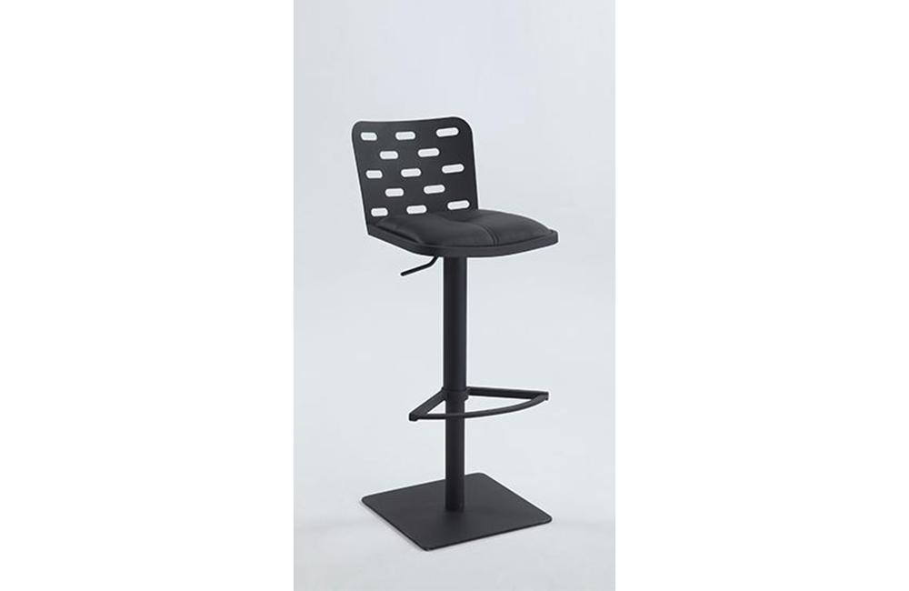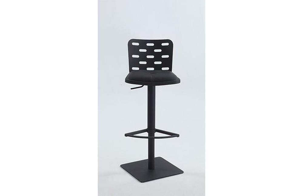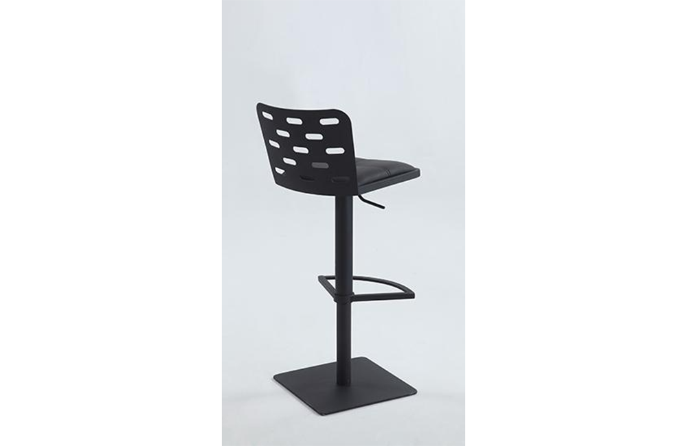This modern metal flat-black with oval holes accent features the ability to swivel and a sturdy stainless steel gas hydraulic lift, making this stool work at any height you choose.