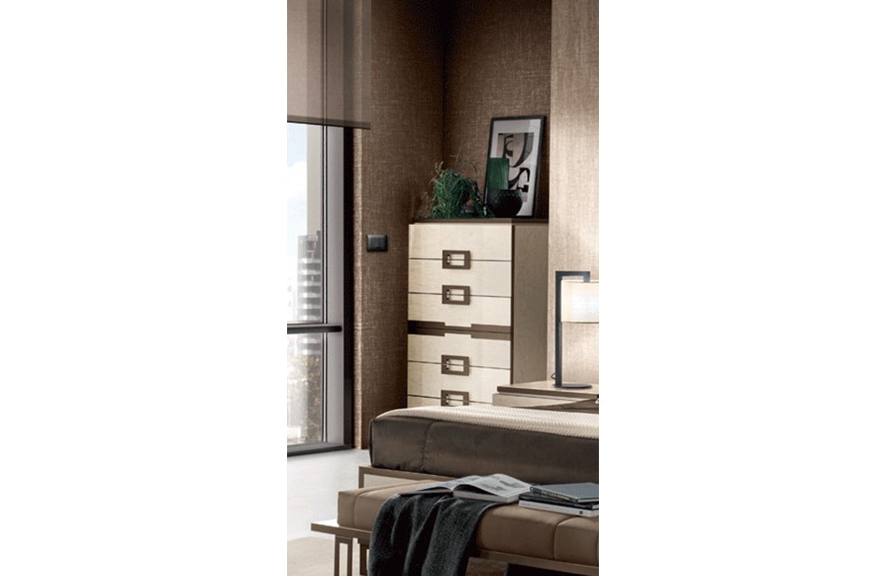 The Poesia bedroom provides intimacy and total comfort, in several variations. Double beds are available with wooden headboard or with upholstered headboard and LED light incorporated along the upper frame in both solutions. The bed is also available with storage box.