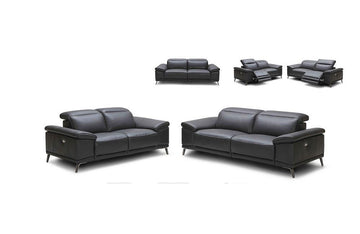 Casa Eleganza is proud to present our New Motion Sofas, the Quentin Sofa Set. Crafted out of premium thick Italian leather for durability & paired with adjustable headrests to produce an extremely comfortable living solution which is a stylish as it is functional. This set features power recliners, a clean tapered design, and chrome legs. Power recliner is controlled at the touch of a button and stops at any position.This sectional is ideal due to our wall hugger feature in which you are able to place the recliner as close to the wall as you’d like. Our wall hugger recliner seat allows you to save space while providing maximum relaxation and comfortableness.
