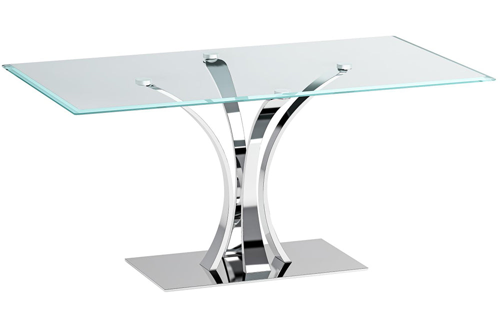 - Detail Description: Contemporary Rectangular Glass Dining Table w/ Steel Pedestal Base