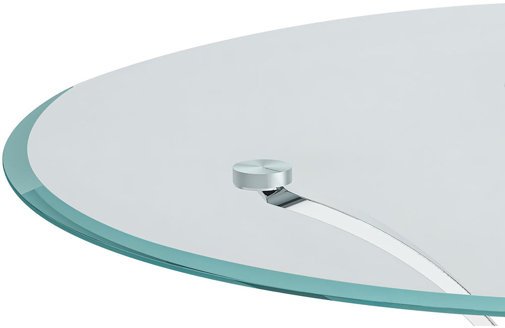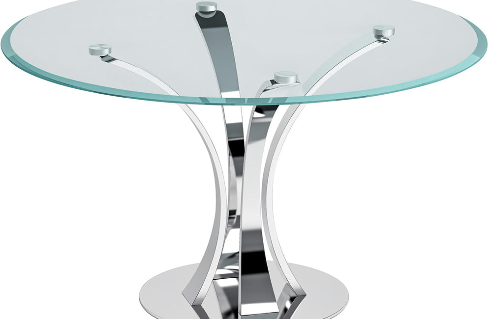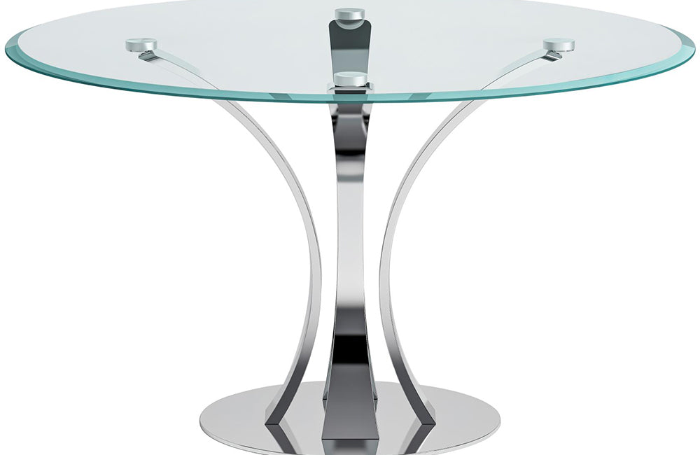 - Detail Description: Contemporary Round Glass Dining Table w/ Steel Pedestal Base