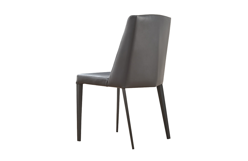 Paramus Furniture is proud to introduce the Reno Dining Chair to our Dining Collection. This chair provides ample lumbar support, and features a blade like leg design throughout, distinguishing it from the average design. The Reno Chair is upholstered in a Grey Eco-Leather, only adding more to the luxurious aesthetic of this design.