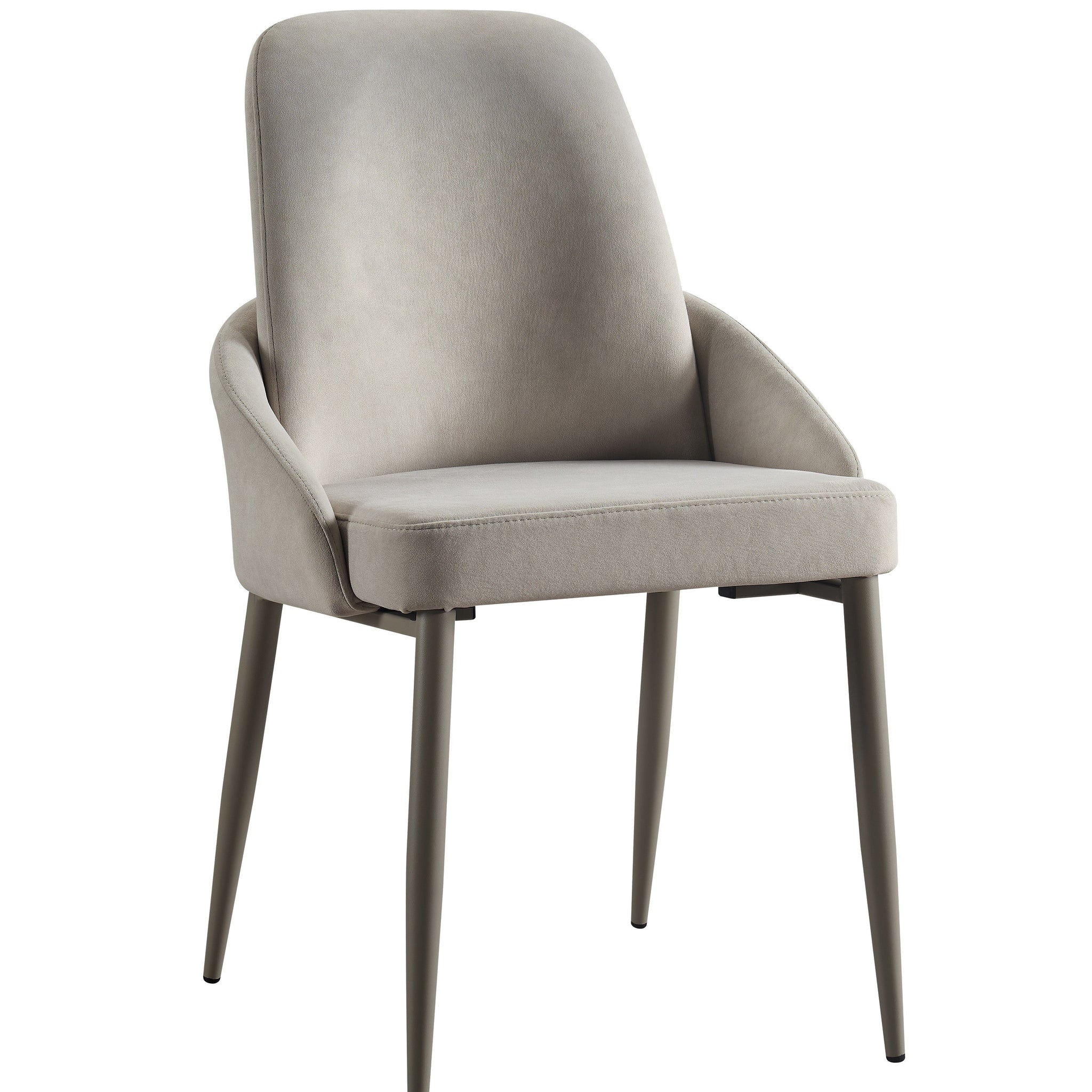 Introducing the 6370 Dining Chair, designed to bring a touch of elegance and modern sophistication to your dining space. This chair is upholstered in a luxurious champagne light grey microfiber fabric, offering a soft texture that is both durable and easy to maintain. The light grey tone adds a refined, neutral look that can complement various color schemes, making it a versatile choice for any dining room. The chair is supported by a sleek light khaki colored metal frame, which not only provides excellent stability but also add a subtle contrast to the light grey upholstery. The soft, neutral colors of the legs and fabric work together to create a balanced, modern aesthetic, making this chair perfect for contemporary or transitional dining spaces. With its blend of comfort, style, and quality, the 6370 Dining Chair is the ideal choice for those looking to elevate their dining experience with a piece that is both stylish and functional.
