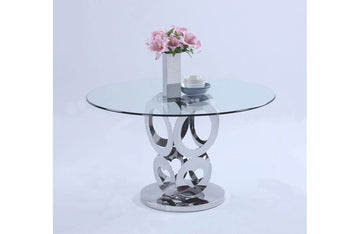 Featuring a distinctive laser cut concentric ring base, as well as a clear glass top, this table offers a vibe that's thoroughly modern in its scope.