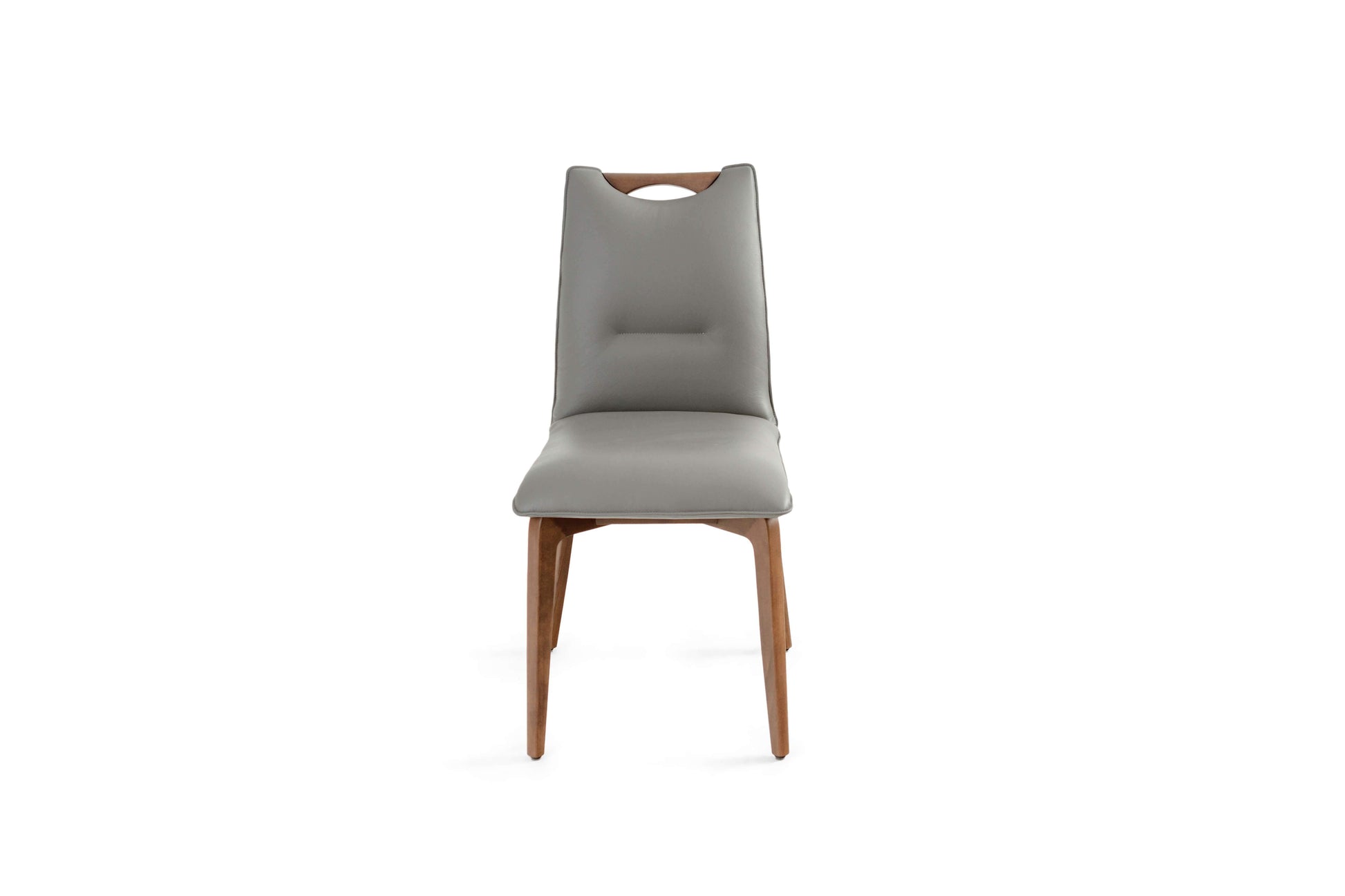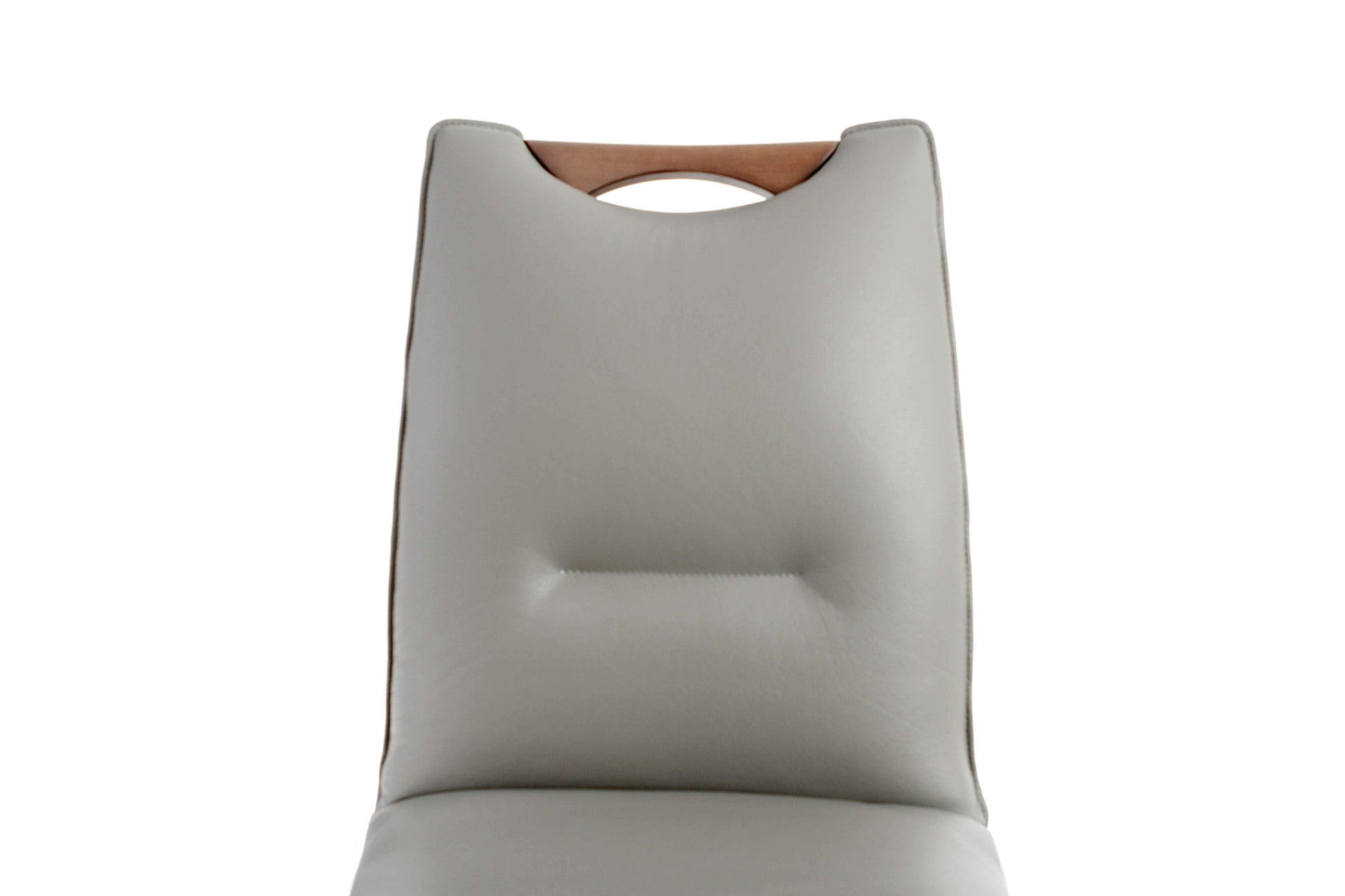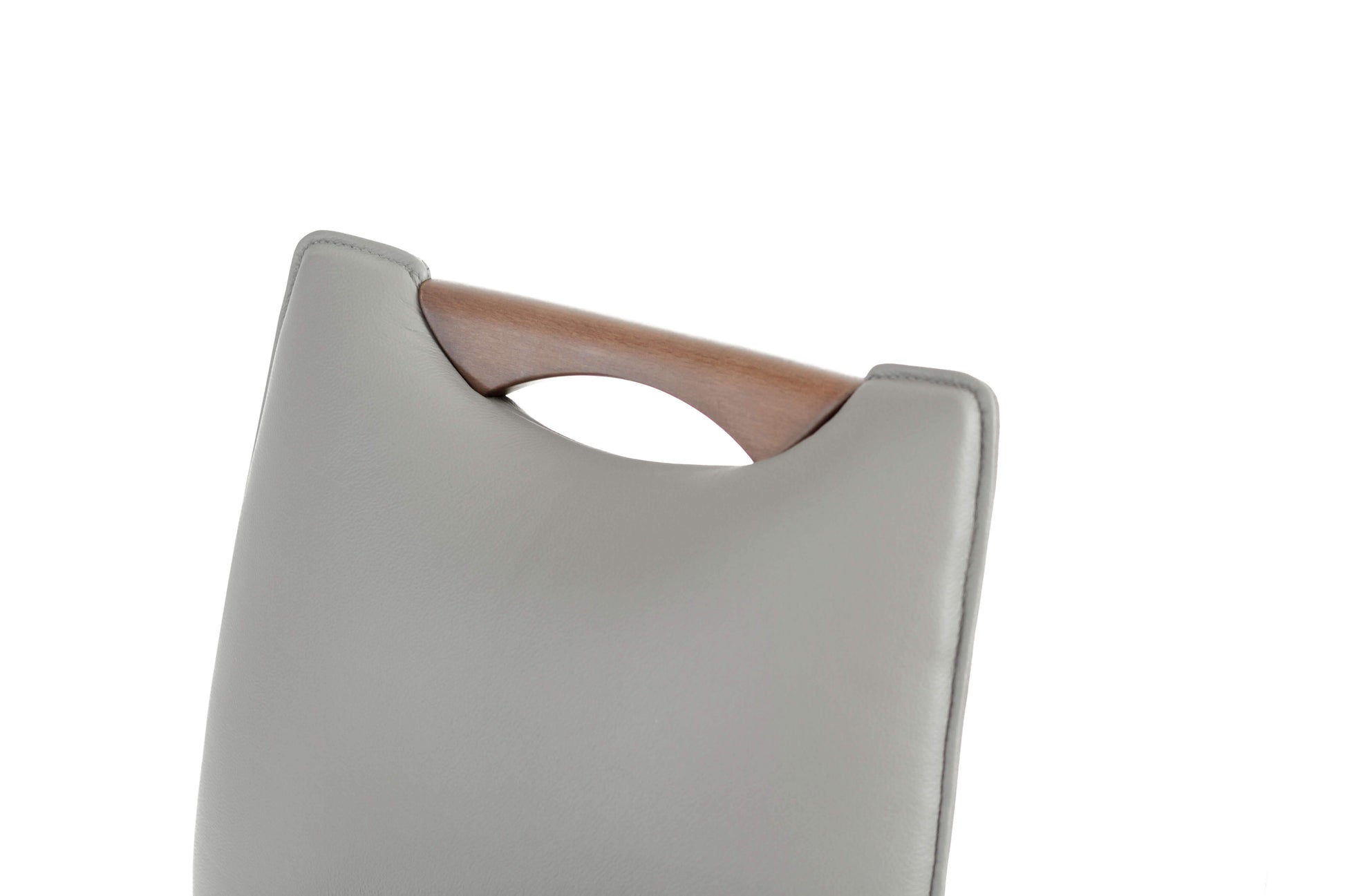 Ritz Walnut Grey Leather chair. 100% Leather all around. Comfortable handle to move chair in and out of the table.