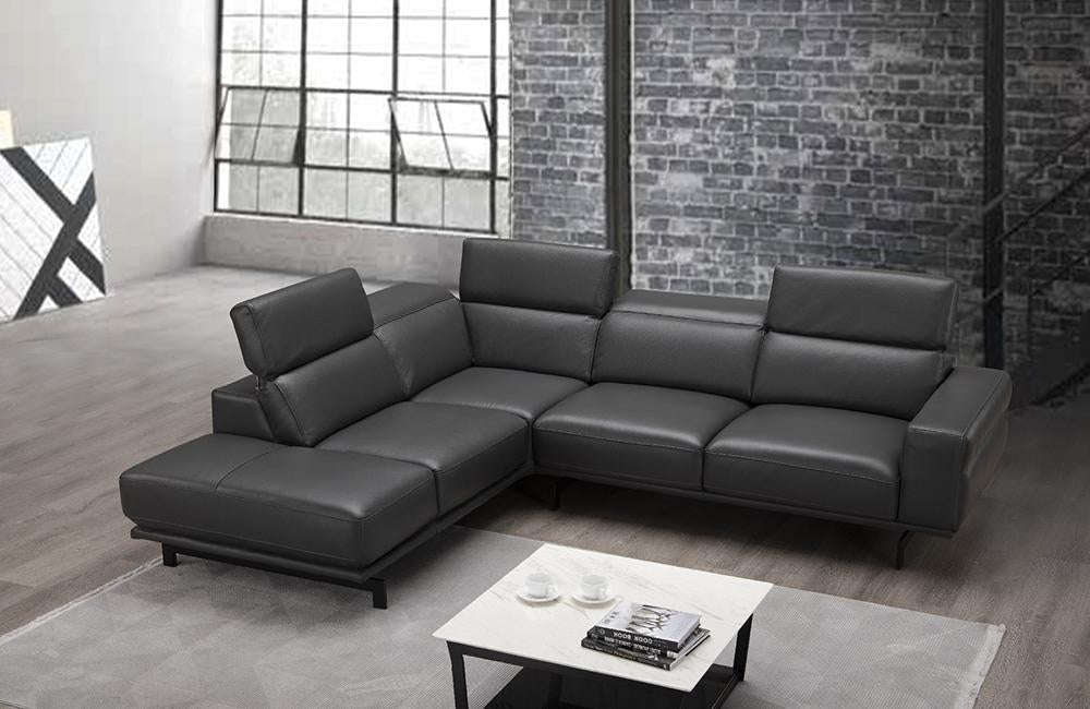 The Rocco premium leather sectional is designed to maximize both comfort and flexibility. The Rocco can be used as a standard sectional or can be converted into a twin-size bed with the touch of a button. Upholstered in top grain leather all around, and supported by a gunmetal grey legs, this sectional is designed to accommodate any décor. Stocked in a neutral.Element Gray, as well as a stunningly bold Snow White.