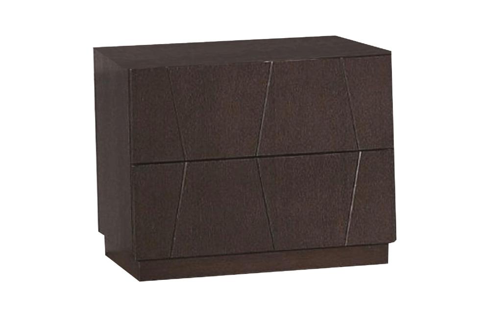 Romanos 2 Drawer Nightstand features a straight line design on the base with a unique pattern on the headboard. It duplicates the pattern of the headboard on their drawers. Romanos 2 Drawer Nightstand will bring the spirit of beauty into your home. Available in a stunning looking Wenge finish.