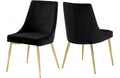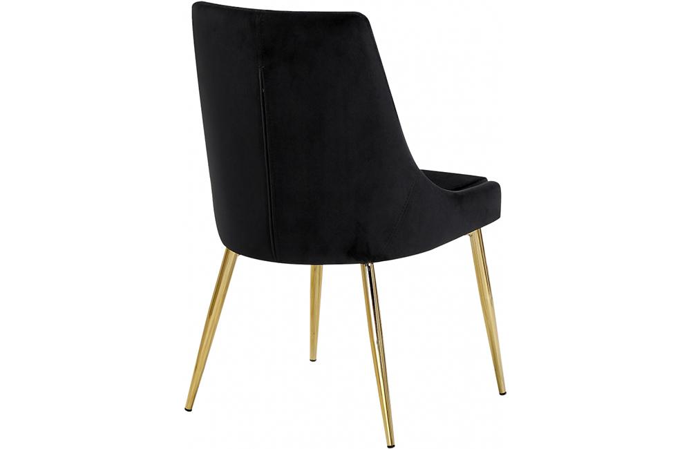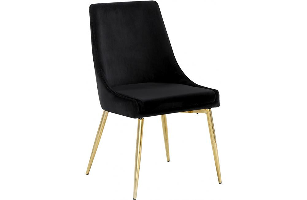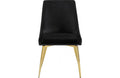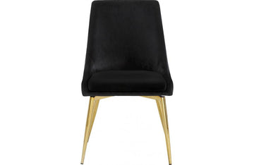 Extend contemporary panache to the dining room with this Rosario Black Velvet Dining Chair. This dining chair features upholstery in sleek navy velvet for a modern look and has an armless design for a retro-inspired vibe. The stark navy color makes it easy to blend in with your existing decor colors or make a contrasting statement with ease. The slanted legs of this chair are gold finished for added modernity and to provide reliable and durable support while you dine.