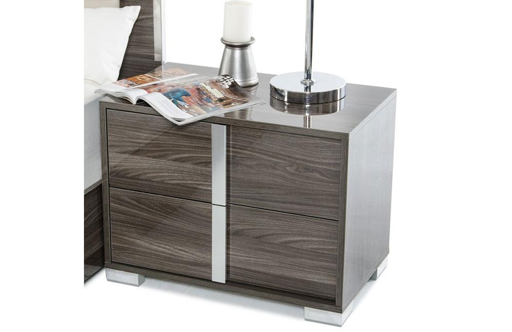 The San Marino Modern Gray Nightstand in dainty gray gloss finish features a left and right side design featuring a soft-closing drawer system. Fitted with 2 drawers with luminous aluminum handles, this made in Italy fully assembled modern Nightstand.