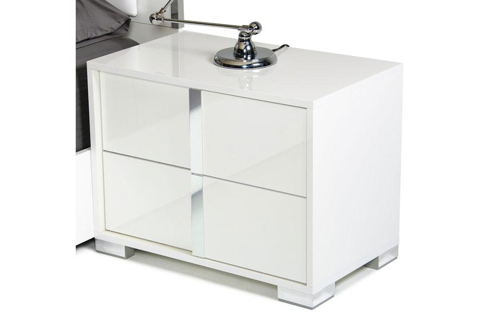 The San Marino Modern White Nightstand in dainty white gloss finish features a left and right side design featuring a soft-closing drawer system. Fitted with 2 drawers with luminous aluminum handles, this made in Italy fully assembled modern Nightstand.