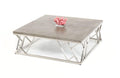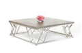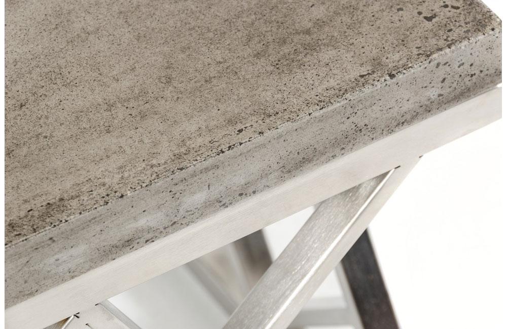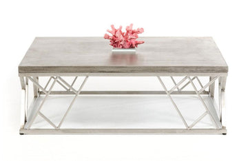 The Scape Modern Concrete Coffee Table exhibits an eye-catching appeal featuring a square dark gray fiber reinforced natural concrete table top with a durable stainless steel frame. It has an acrylic sealed finish to prevent staining that further states its toughness. The interlaced stainless steel legs added to its appealing look.