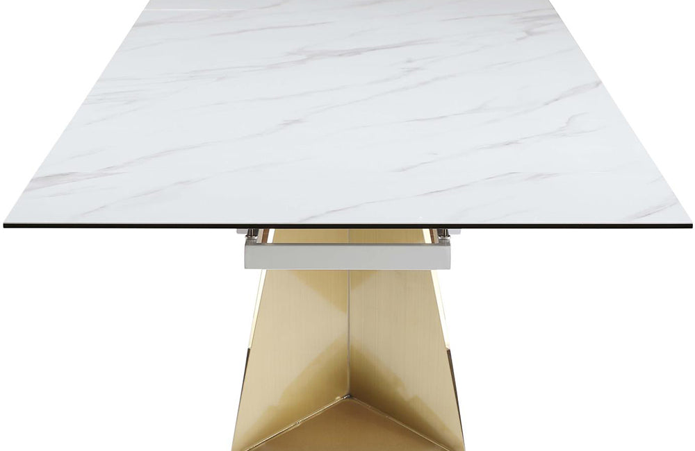 Contemporary Extendable Ceramic Top Dining Table w/ Golden Base.