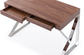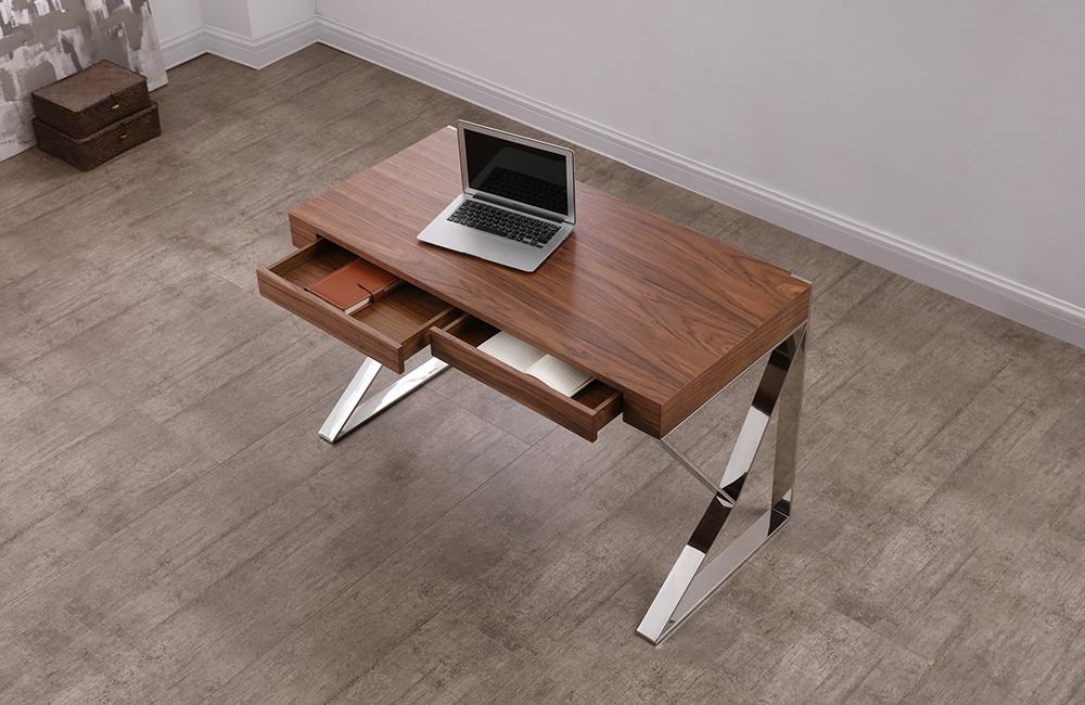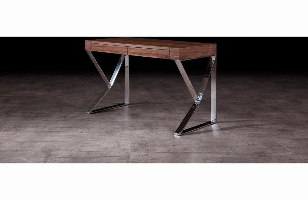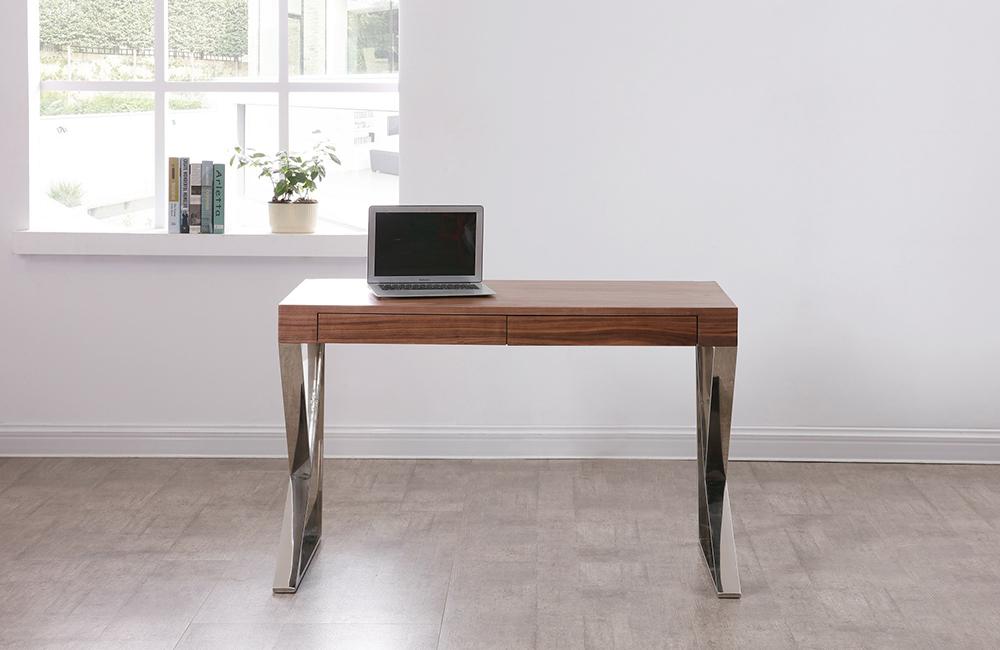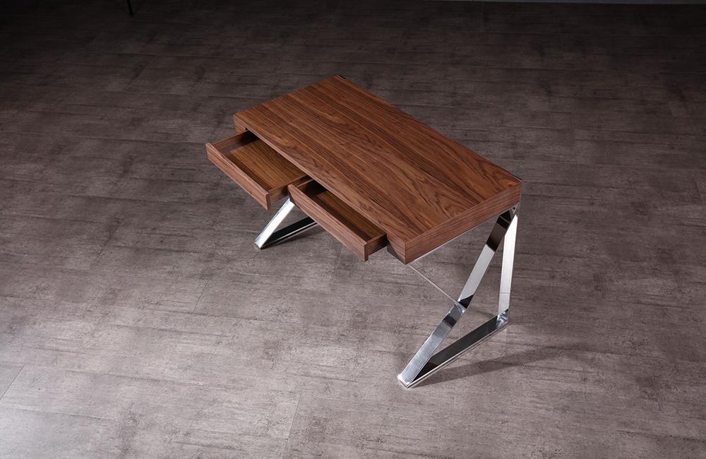 Designed to exude astounding elegance, The Seal Office desk features an unique aesthetic with unique chrome legs, and a striking top in your choice of warm walnut veneer, or high gloss white. This desk strikes a perfect balance of dynamic design, and functionality.