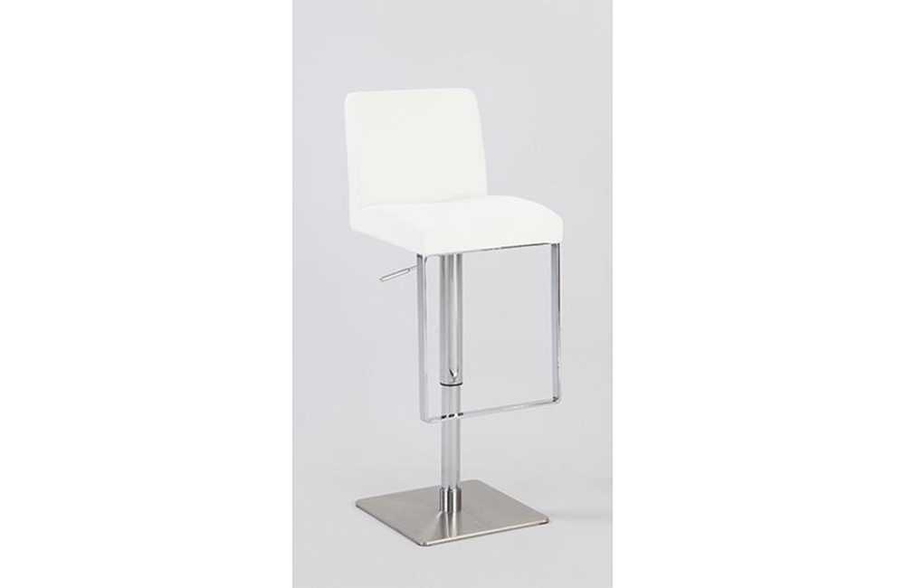 This is a very beautiful brushed stainless steel adjustable height swivel stool with PVC upholstery and pneumatic gas lift. Additional features are adjusting the seat height from the from 21" up seat height of 29". This stool is also available in Black.