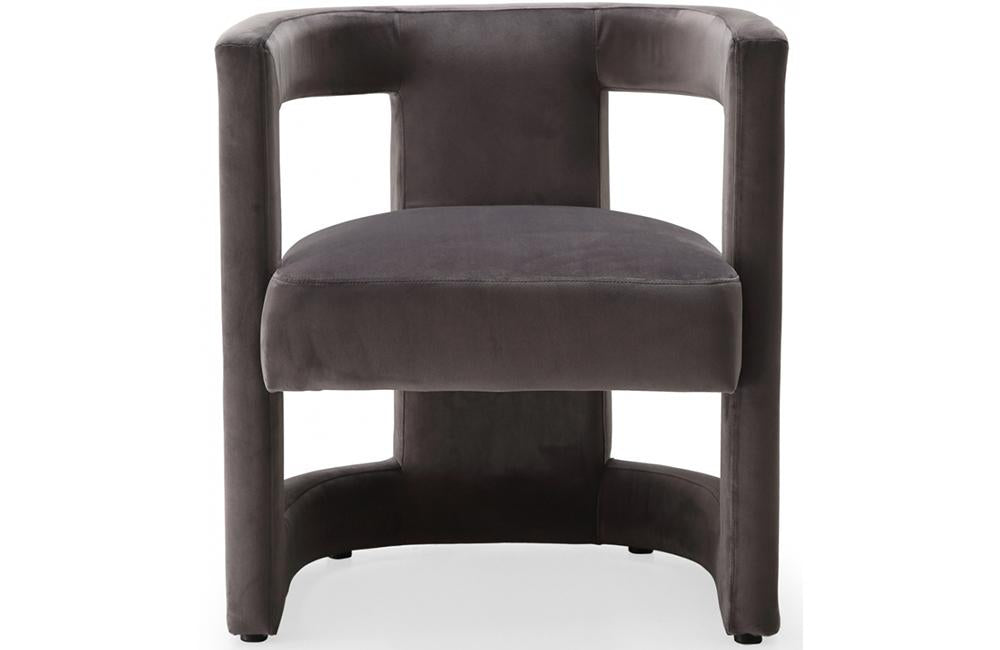 Make sitting a contemporary affair with this fun Shade velvet accent chair. A barrel design with a modish cutout twist makes this chair the center of attention wherever you use it. The frame is built from sturdy material for lasting beauty and performance, and the cushions are thick and plump, so they cradle your body while you unwind and rest. The chair is covered from top to base in rich pink velvet, so it feels amazingly soft to the touch.