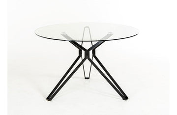 Add a modern touch to your home with the Soiree Dining Table. The round top is made with transparent tempered glass, the base and legs are comprised of iron and are hand painted in black. The Soiree is a sleek and durable choice. Fits four comfortably and is able to be used for both residential and commercial projects.