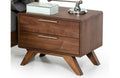 The Soria Modern Walnut Nightstand is out to give your bedroom that cool posh appeal featuring a sleek Walnut veneer finish. Stainless steel handles adorn the 2 soft-closing drawers. This modern nightstand requires no assembly.