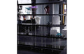 The Stafford black room divider has 4 levels of shelving in black crocodile lacquer, supported by stainless steel bars, creating 6 open vertical shelves of equal sizes. The center vertical shelf is wider, thus you get 7 open vertical shelves. The top can also hold other paraphernalia. This divider offers an elegant way of showing your photos, mementos, books, and other decorative items. Available also in White.