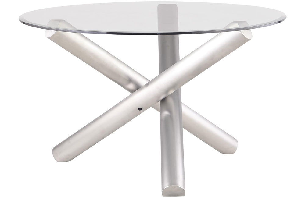 Contemporary Dining Table w/ 48" Glass Top & Steel Base.