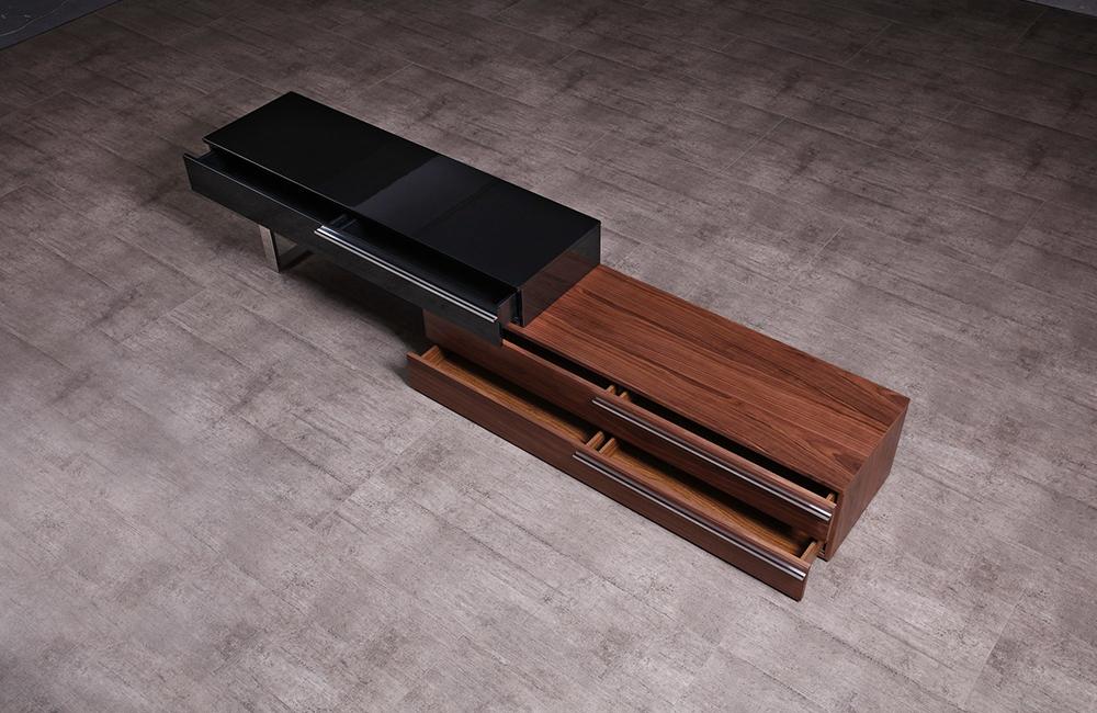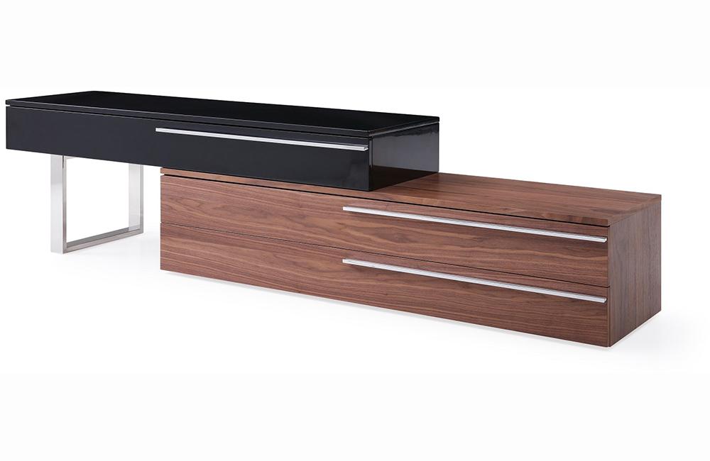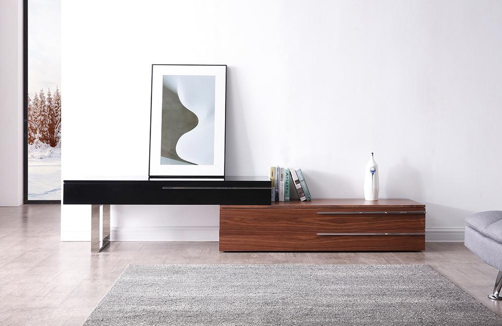 Sometimes the simplicity of a design is what anchors sophistication. This modern TV base features two contrasting colors juxtaposed to create a minimalist yet alluring design. This TV base features premium soft close drawers, and is available in 3 combinations. The top portion can be moved left or right to create the perfect size. Hang your TV on the wall, and place this unit underneath for the perfect accentuated look.