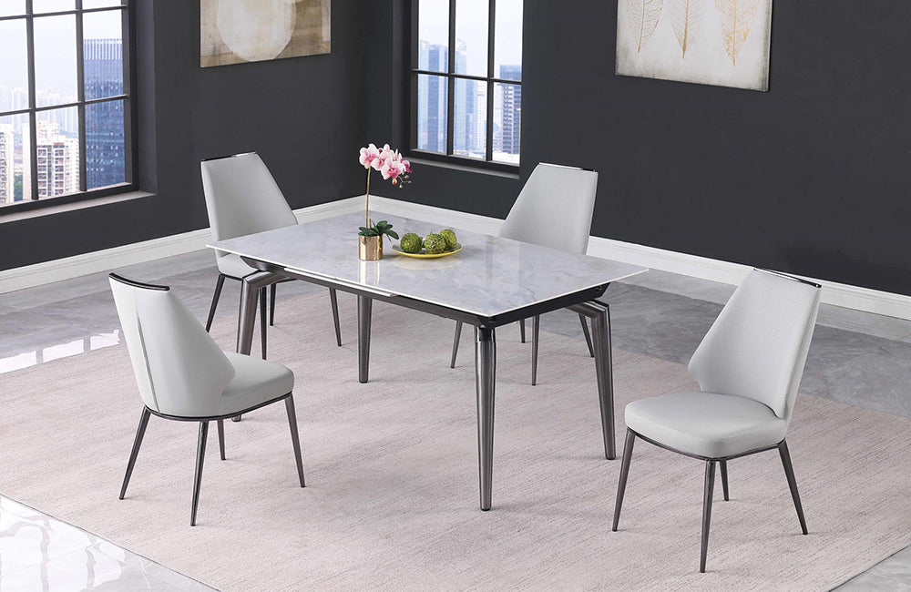- Detail Description: Dining Set w/ Extendable Sintered Stone Table & Curved Back Side Chairs