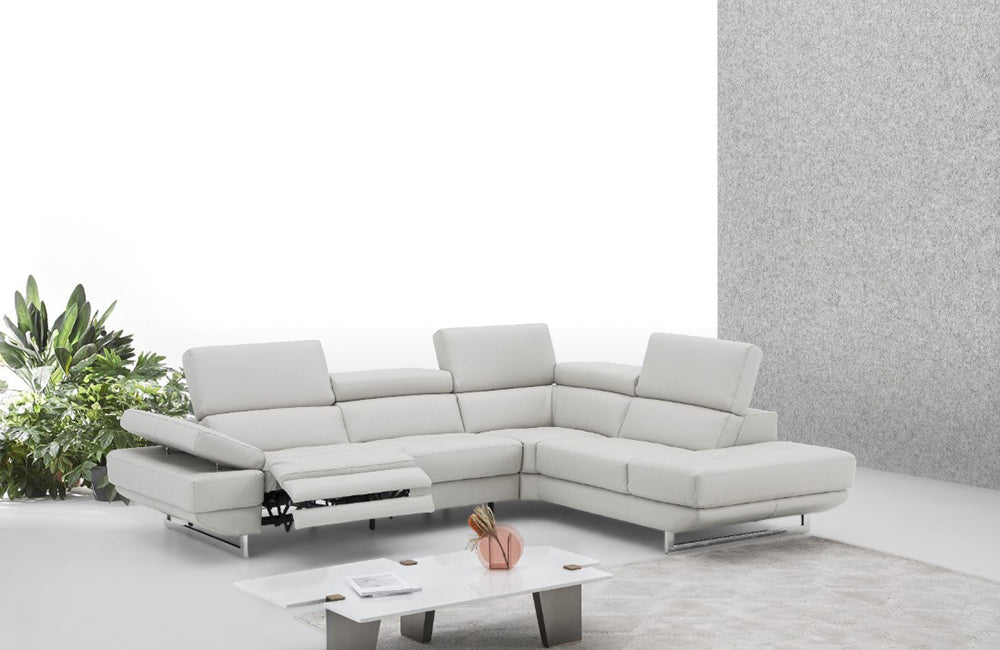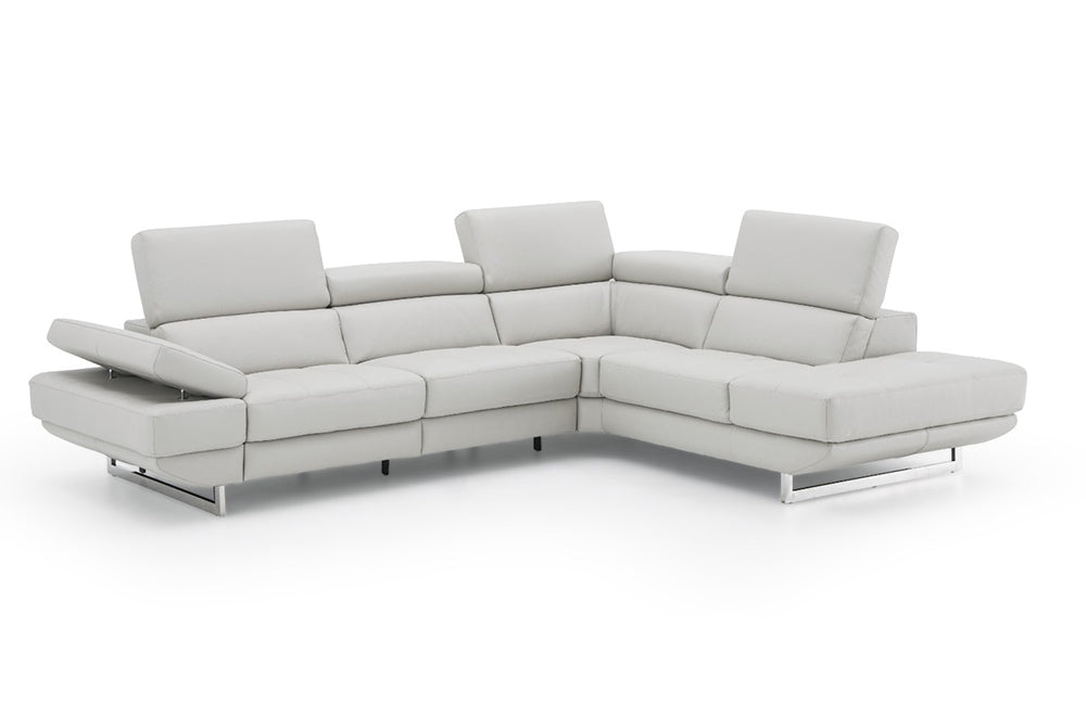 This beautiful sectional is constructed with thick Italian Leather, designed for flexibility and durability. Available in Blue Grey, Caramel, Dark Grey, Silver Grey & Snow White.