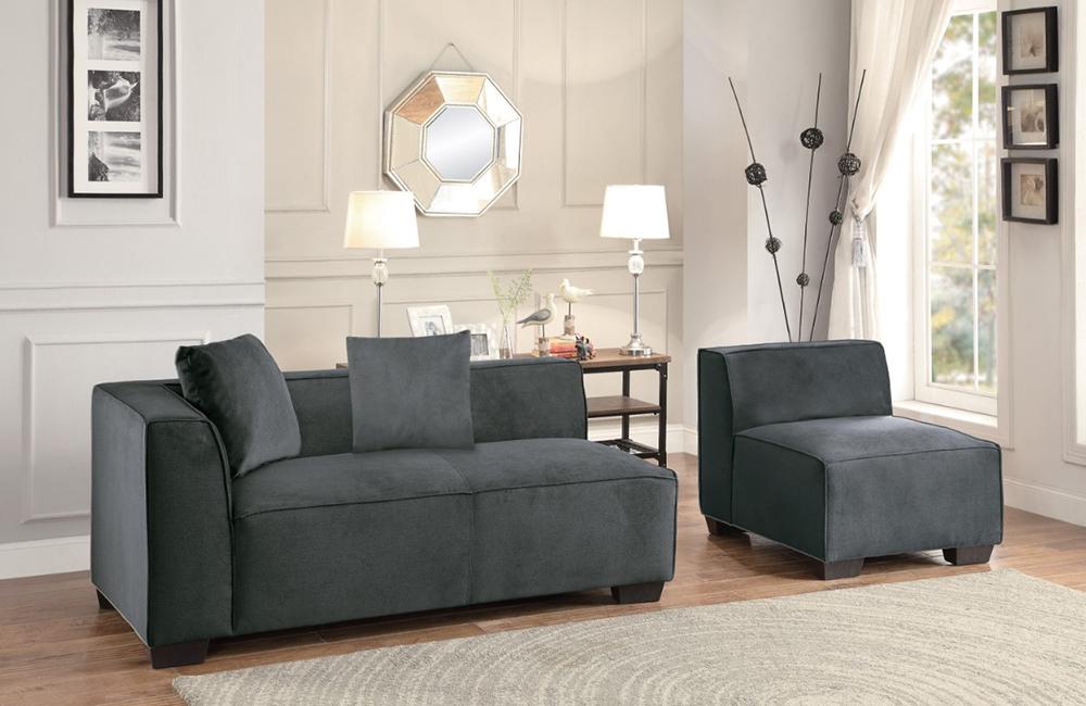 Configurable to fit your lifestyle, the Toro Collection is a unique take on contemporary styling. With a stance that can take the shape of a sectional in one moment by adding the one-arm love seat as a chaise the next, flexibility reigns in your space. An armless chair allows you to extend the sectional by dividing the available left side two-seater and right side chaise, or use as a separate seat. A wide ottoman provides space to kick up your heels, allow for extra seating, or when aligned together with the sectional, you can create one large sleeping area. Offered in graphite fabric cover.