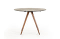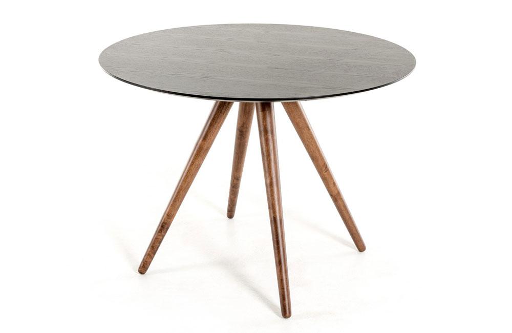 Make your home a step closer towards becoming eco-friendly by adding the Tracer Dining Table. The Tracer uses natural walnut wood from the Para rubber tree, a sustainable and eco-friendly choice for the four pronged base. A round high grade MDF ash veneer top painted black completes the scandinavian design. The contrast of the black top and walnut legs creates a striking composition. Matching chairs available separately. Some assembly is required.