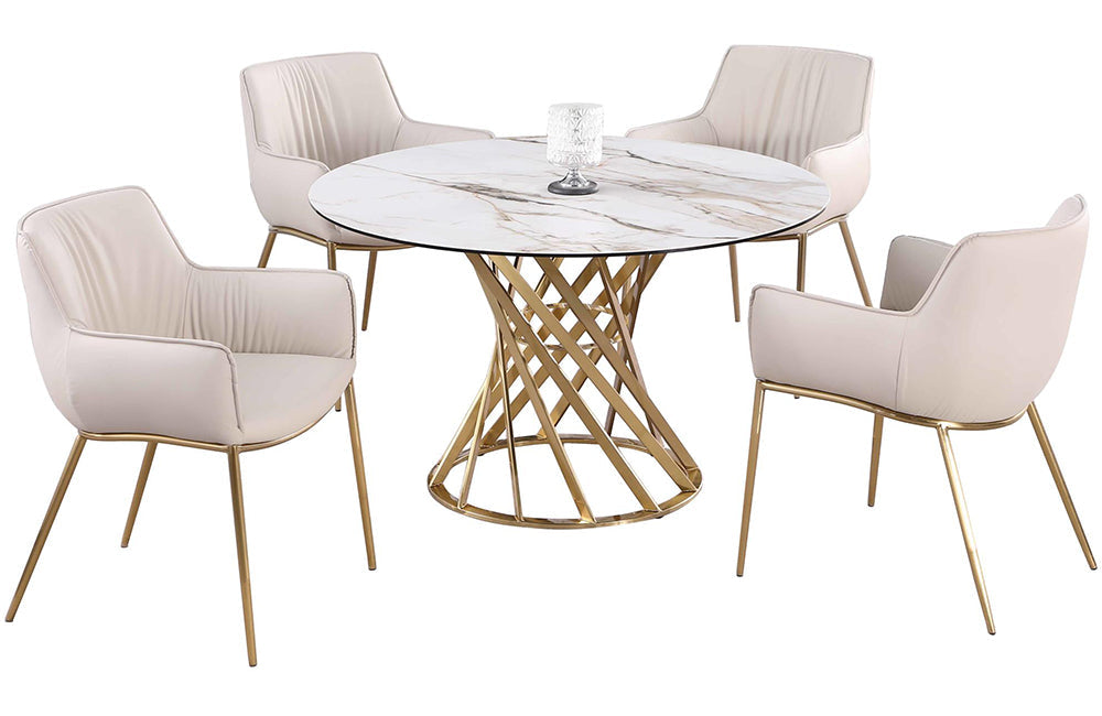 - Detail Description: Dining Set w/ Sintered Stone, Golden Base & Club Style Arm Chairs