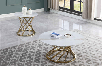 Contemporary Sintered Stone Top Cocktail Table w/ Golden Base.