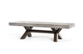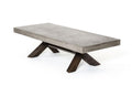 The Urban concrete coffee table exhibits naturalness featuring an eco-friendly material. Made of recycled concrete, this rectangular coffee table is wax finished, making it stain resistant. The solid Acacia base is brushed in Wenge color to give it a rustic feel. This concrete coffee table speaks of simple elegance and durability.