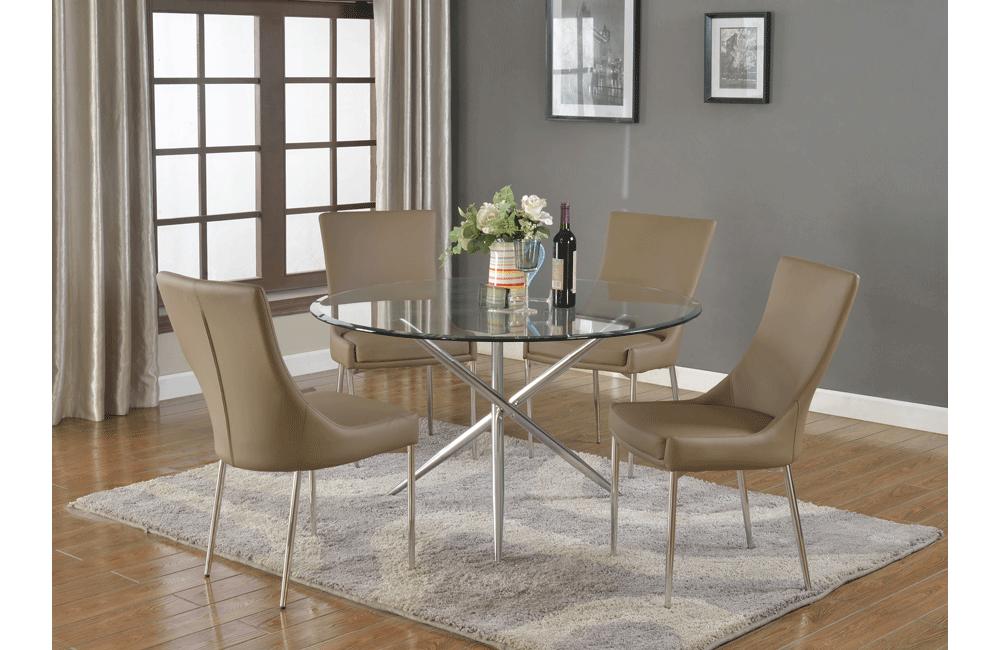 Club style side chair, Polished stainless steel chair legs matching dining table, CA fire retardant foam.