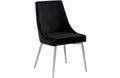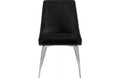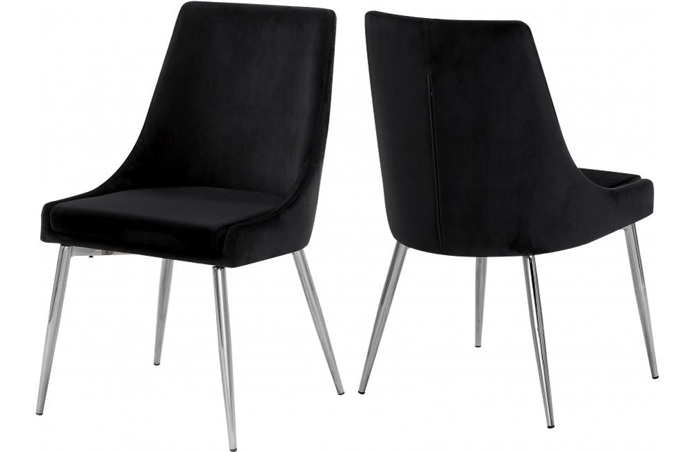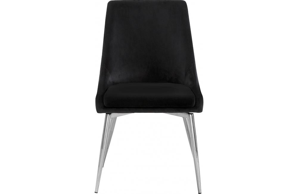 Extend contemporary panache to the dining room with this Vida Black Velvet Dining Chair. This dining chair features upholstery in sleek navy velvet for a modern look and has an armless design for a retro-inspired vibe. The stark navy color makes it easy to blend in with your existing decor colors or make a contrasting statement with ease. The slanted legs of this chair are chrome finished for added modernity and to provide reliable and durable support while you dine.