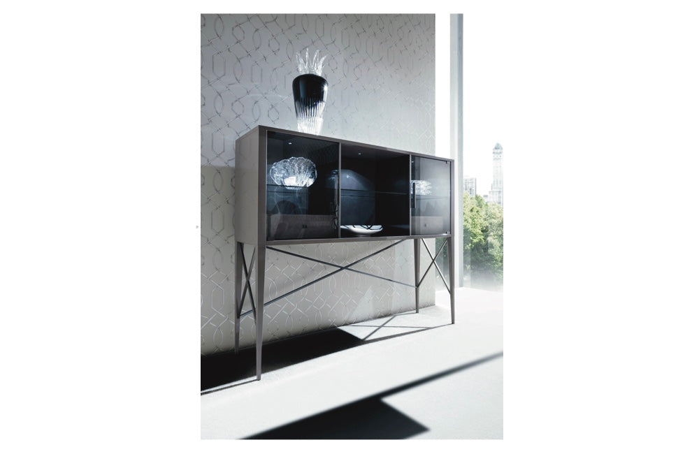 2 glass doors with back of the center part upolstered in natural protected nubuk leather with