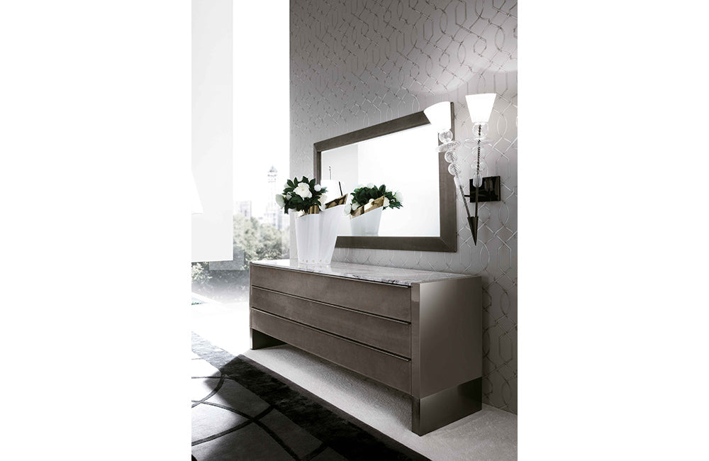 Small dresser in high gloss polyester grey lacquer with marble top.