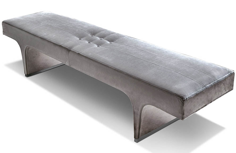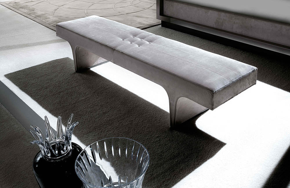 Upholstered bench available in first grade leather, nubuk leather, lizard printed leather,