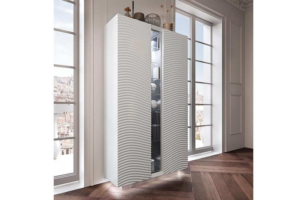 Wave 2 Door china cabinet with light White