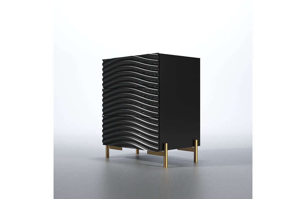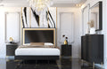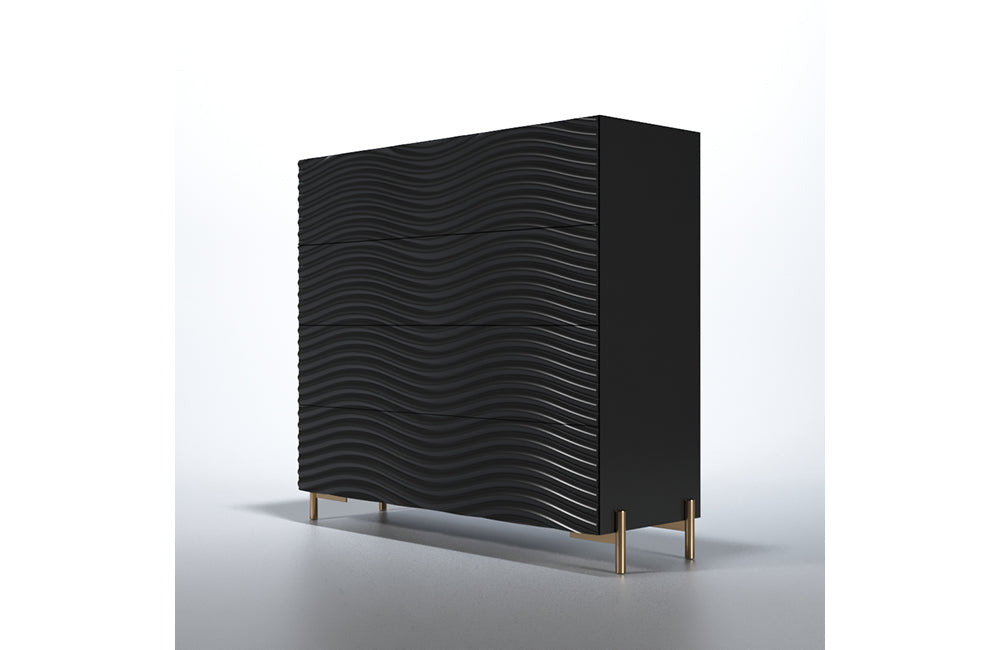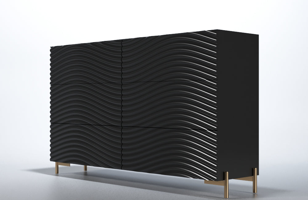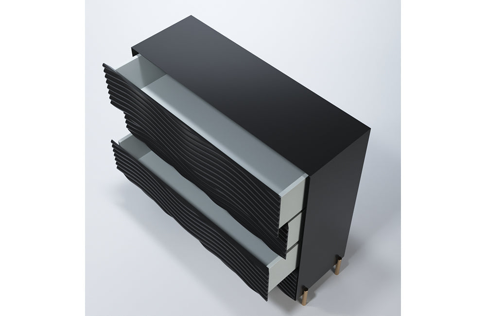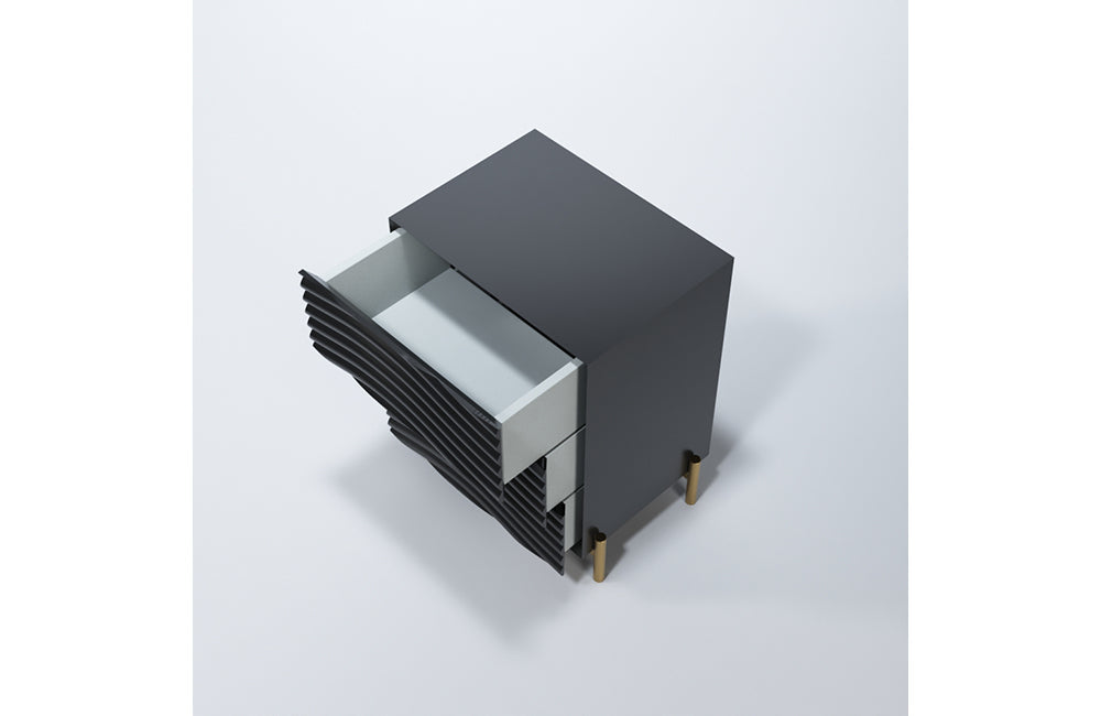 One of a kind modern design bedroom with wave shapes in dark grey.