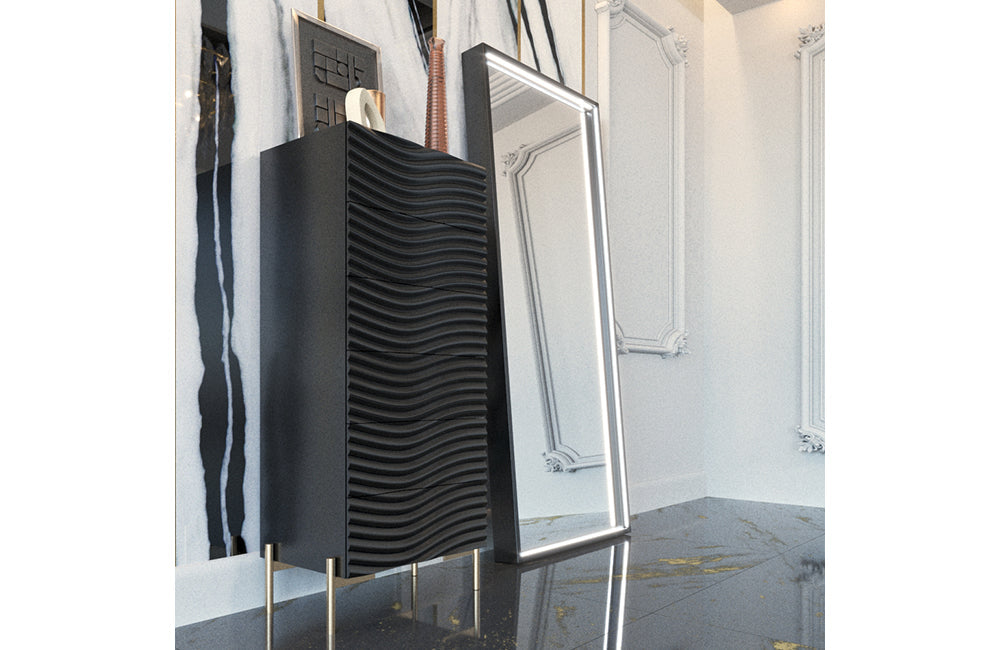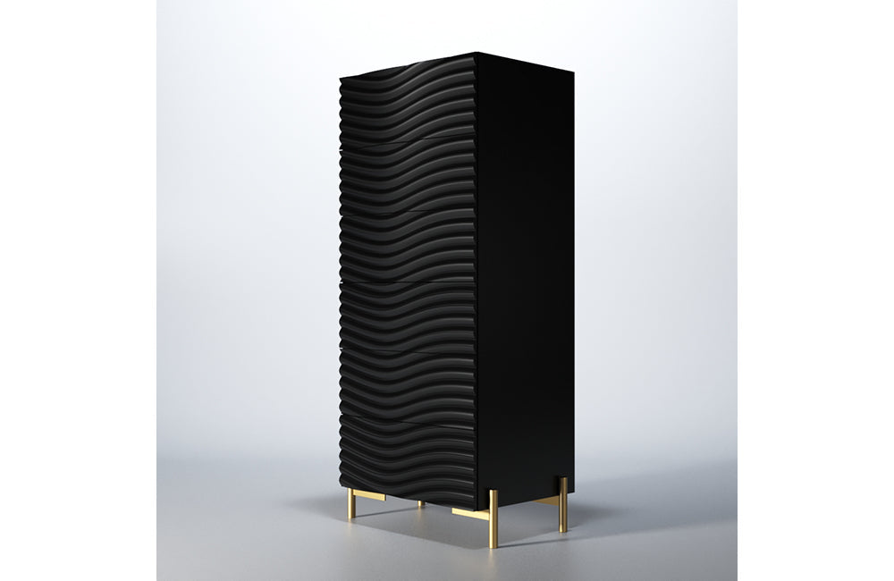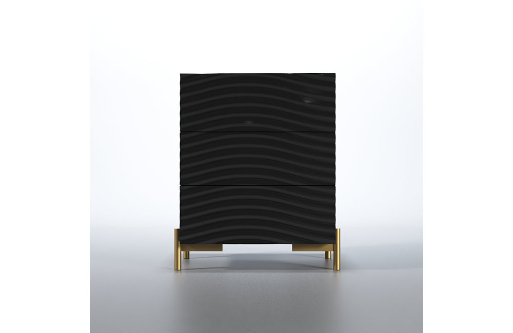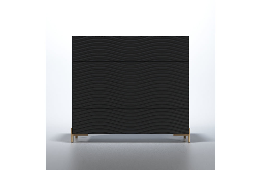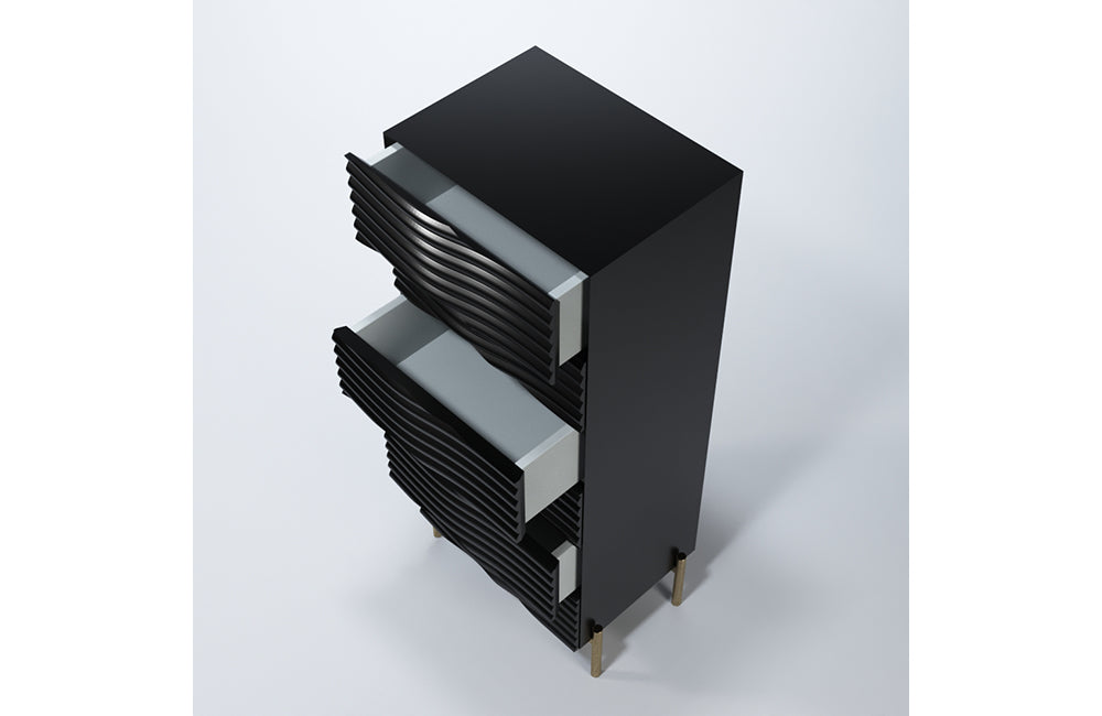 One of a kind modern design bedroom with wave shapes in dark grey.
