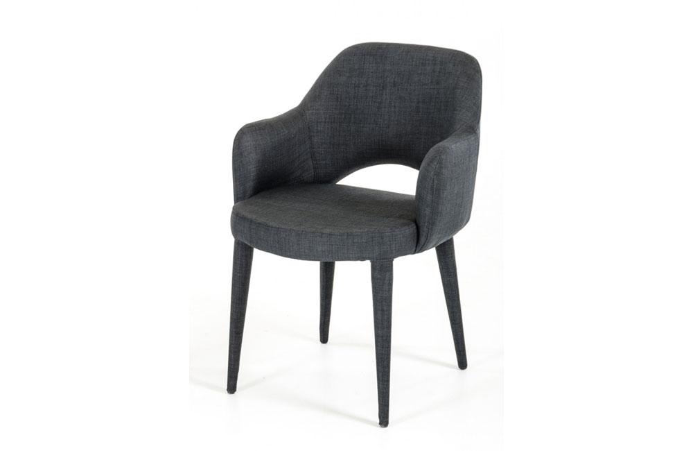 Inspired by the Mid Century Modern era, the Williamette Dining Chair was designed with the iconic characteristics of furniture from that time period. The solid back with a slight opening towards the bottom is ergonomically designed to fit your body. The Williamette also features armrests for additional comfort and four tapered legs. Constructed with steel, the frame and legs of the chair are durable and stable. Dark gray polyester fabric covers the entire chair for a unified design. Matching pieces available separately. Available also in red.