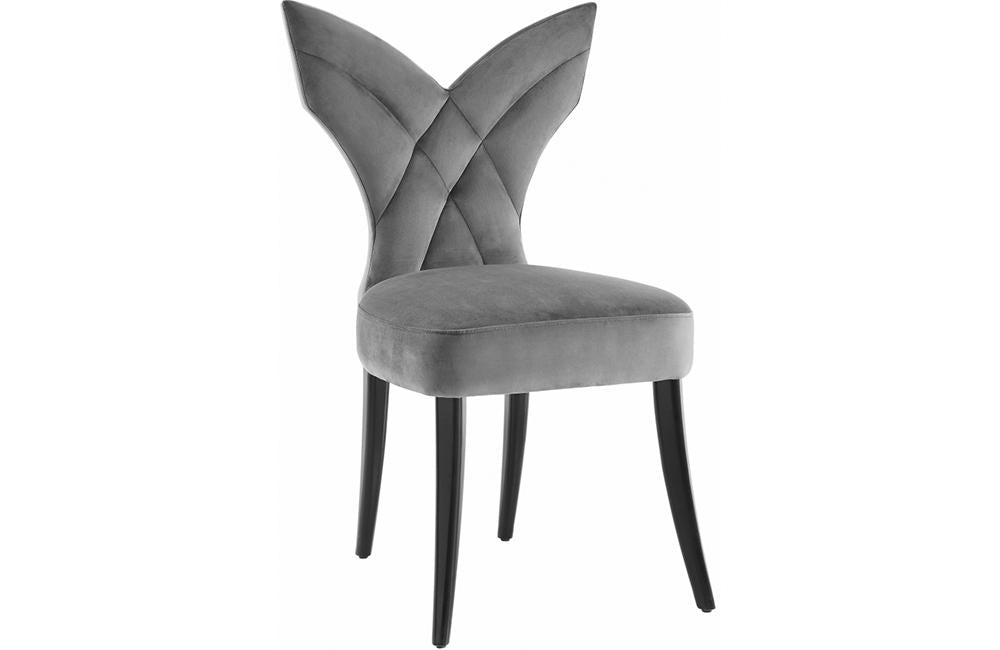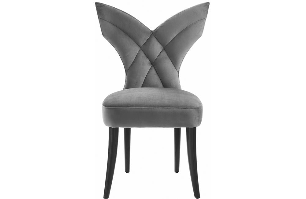 Dine in luxurious style with the Xylon velvet dining chair. Featuring a curved high back, plush cushioned seat and winged design this dining chair is sure to take your dining experience to a whole new level. Black wood legs provide sturdy support and complement the stunning black upholstery for a sleek, contemporary design.